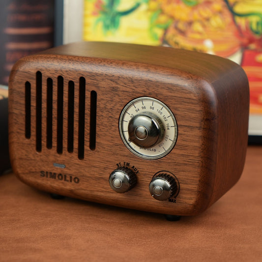 SIMOLIO Vintage Retro Bluetooth Speakers with Loud HD Sound, Nature Black Walnut Wooden Speaker (JH-761M)